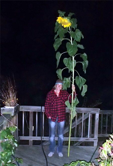 Holding on to the summit marker of Mount Moosilauke